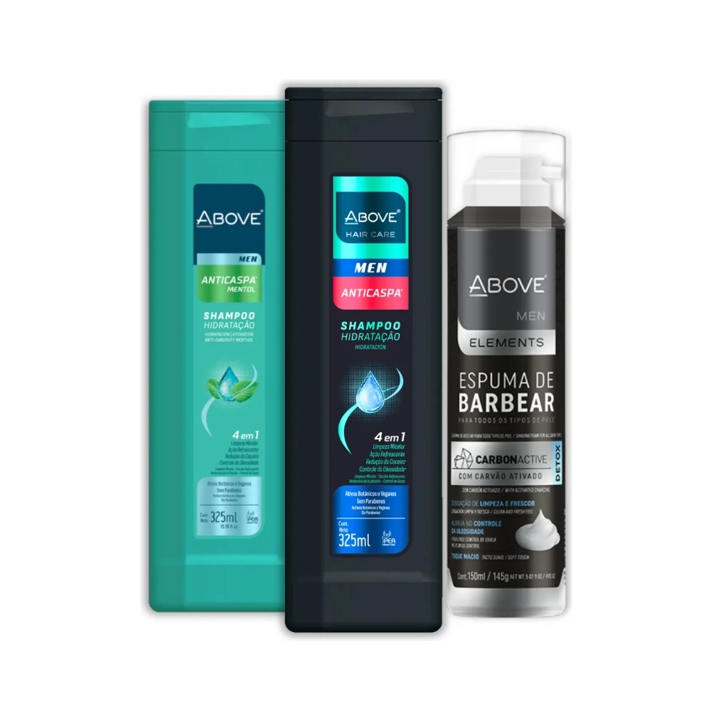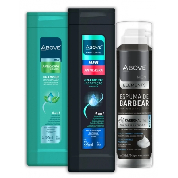 KIT ABOVE SHAMPOO ANTICASPAS FRESH E MENTOL 325ML + ESPUMA DE BARBEAR