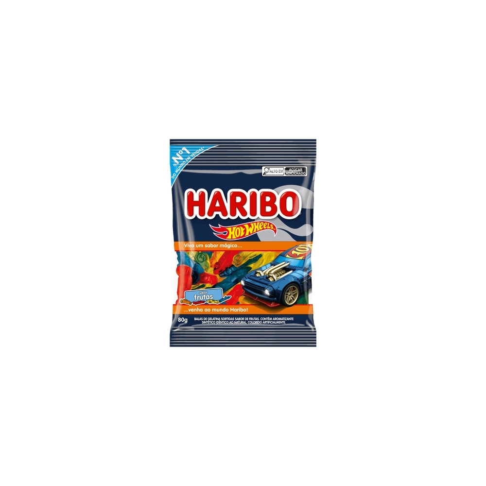 VAREJO>HARIBO>BALAS DE GELATINA>BALA GEL HOT WHEELS FRUT/SORT HARIBO 12X80G