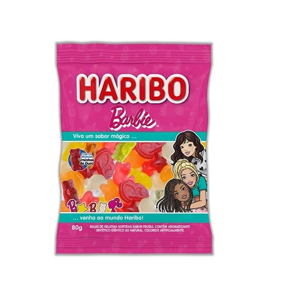 VAREJO>HARIBO>BALAS DE GELATINA>BALA GELATINA BARBIE FRUT/SORT HARIBO 12X80G