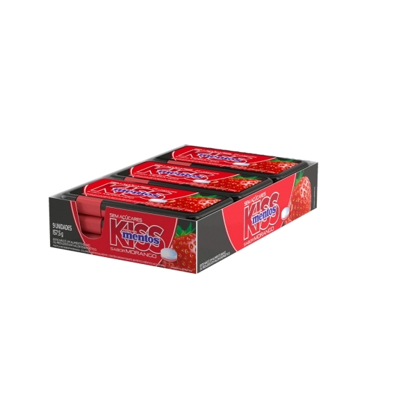 VAREJO>PERFETTI VAN MELLE>BALAS>MENTOS KISS MORANGO FLAT 12DPX9UNID