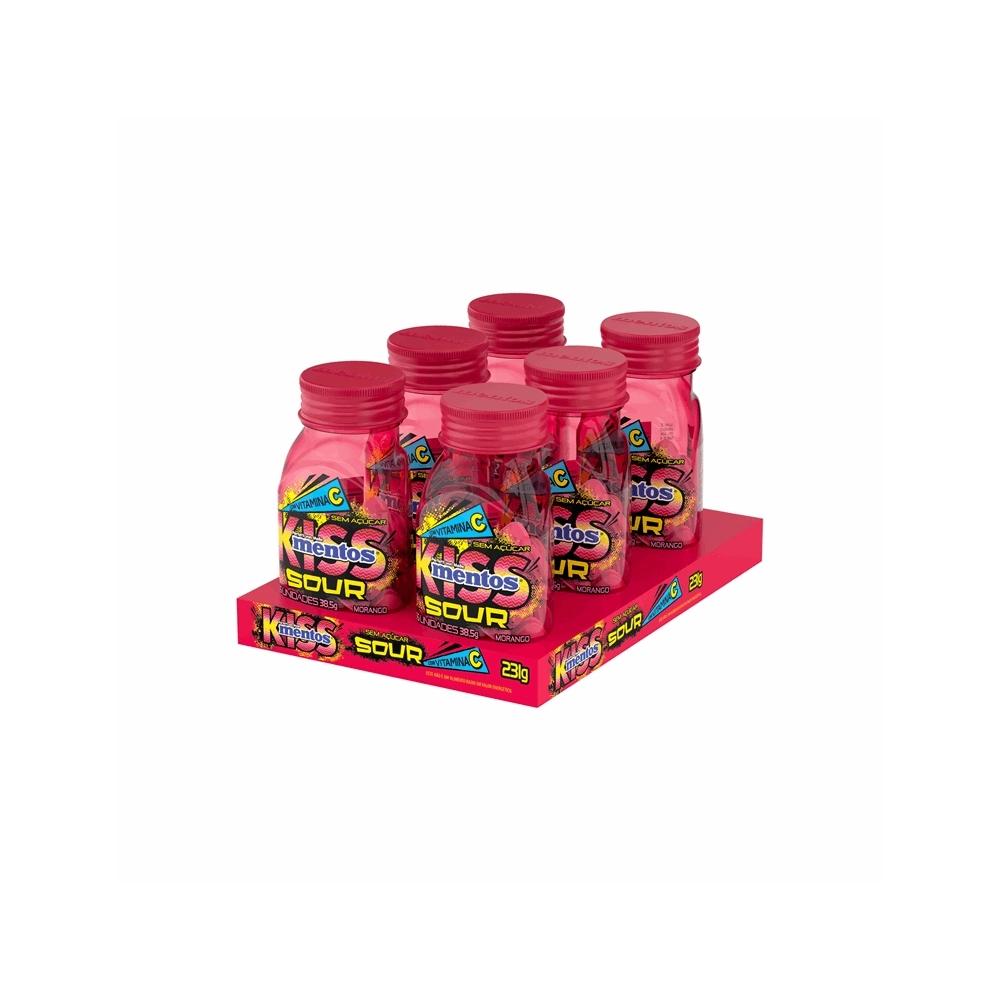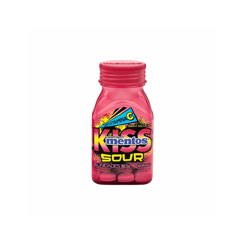 VAREJO>PERFETTI VAN MELLE>BALAS>MENTOS KISS SOUR MORANGO 55X6 C/6