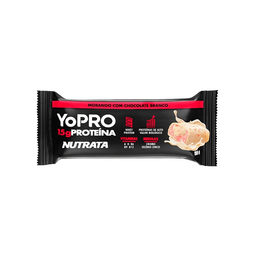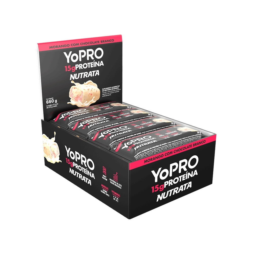 VAREJO>NUTRATA>BARRAS DE PROTEÍNA>NUTRATA BARRA YOPRO MORANGO 6X12UNX55G