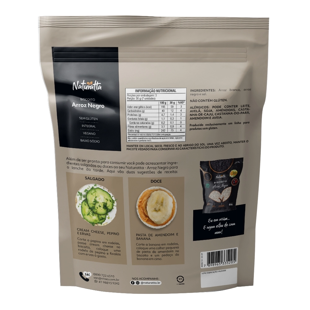 VAREJO>VITAO>BISCOITOS>BISC ARROZ NEGRO NATURATTA 20X90G