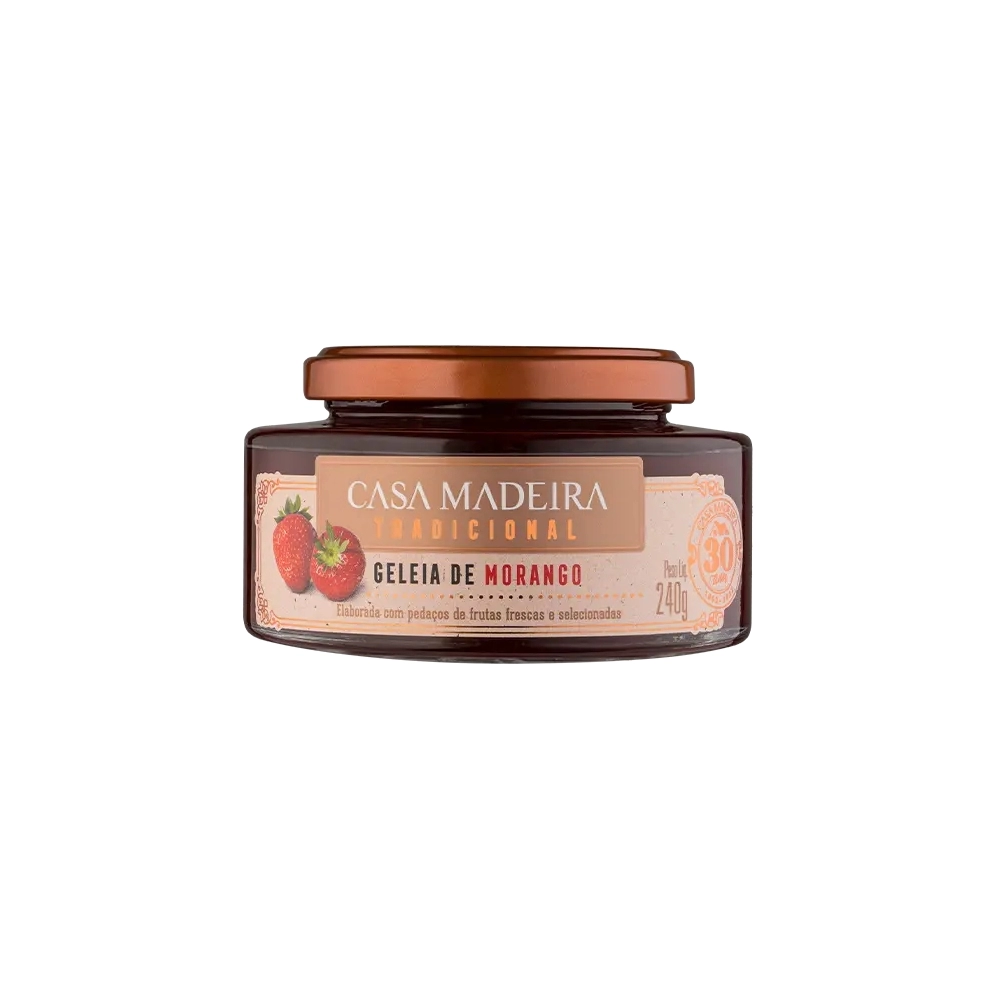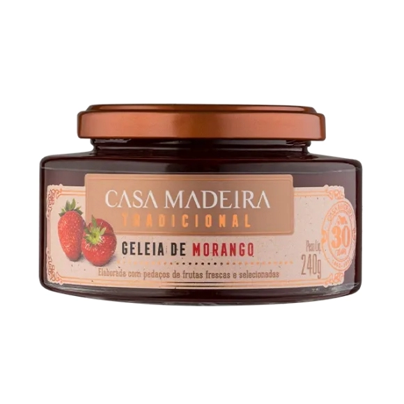 VAREJO>CASA MADEIRA / VALDUGA>GELÉIAS>GELEIA CASA MADEIRA MORANGO C/ PEDACOS 240G