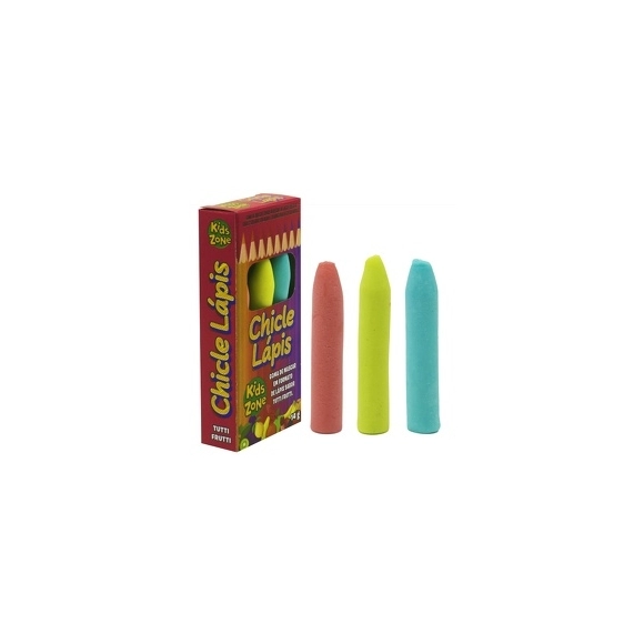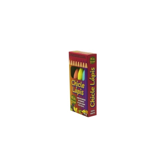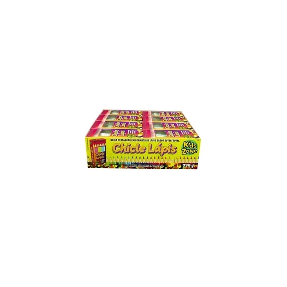 VAREJO>KIDS ZONE>GOMA DE MASCAR>CHICLETE EM FORMATO DE LAPIS SABOR TUTTI-FRUTTI 24X4DP