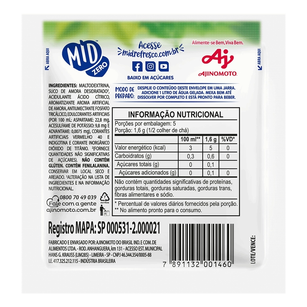 VAREJO>AJINOMOTO>REFRESCO MID ZERO>FIT/MID ZERO AMORA 8G C/120