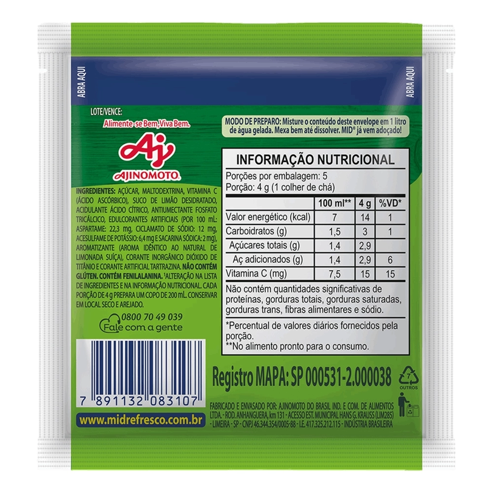 VAREJO>AJINOMOTO>REFRESCO MID>REFRESCO MID LIMONADA SUICA 20G C/120