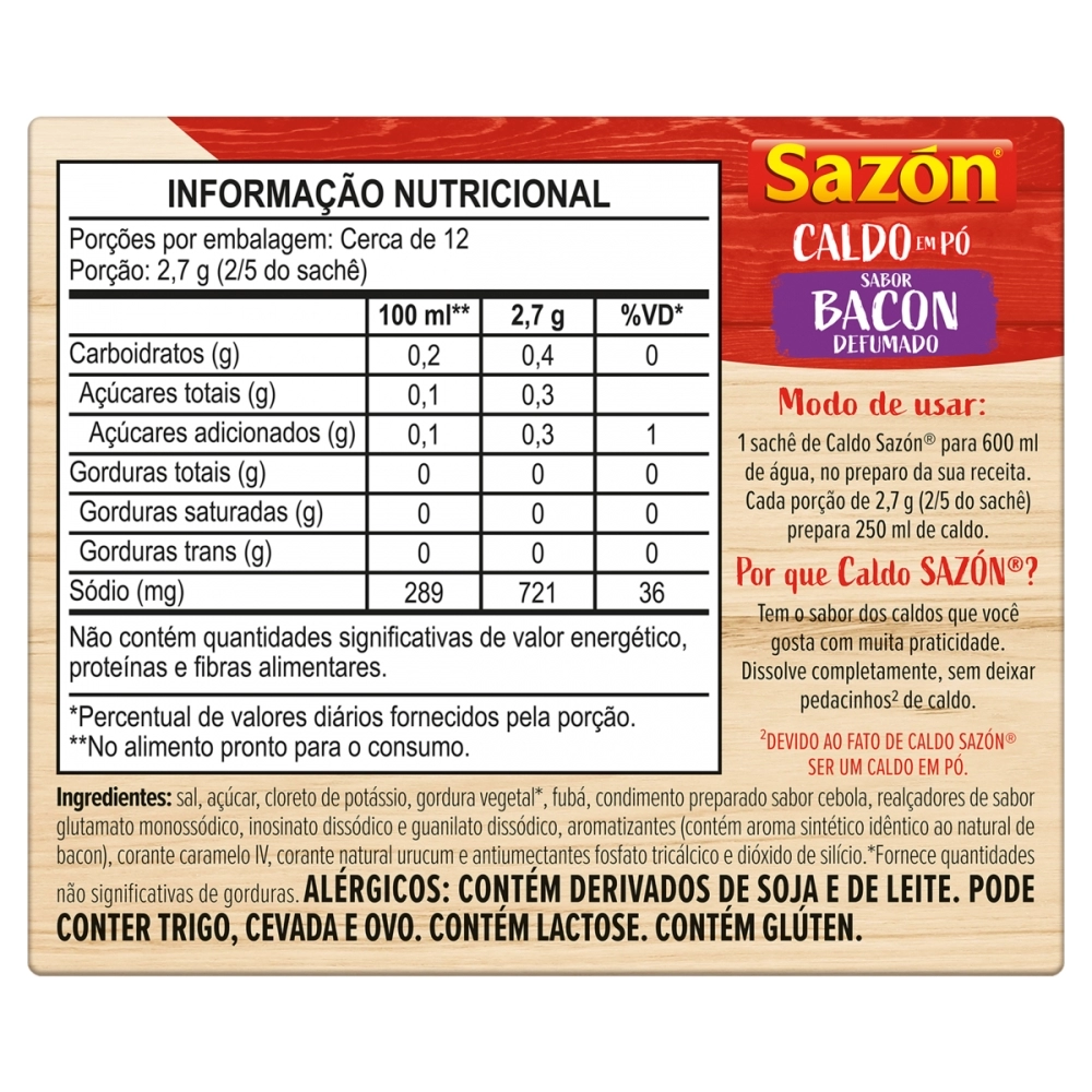 VAREJO>AJINOMOTO>SAZÓN CALDO>CALDO SAZON BACON 32,5G C/48