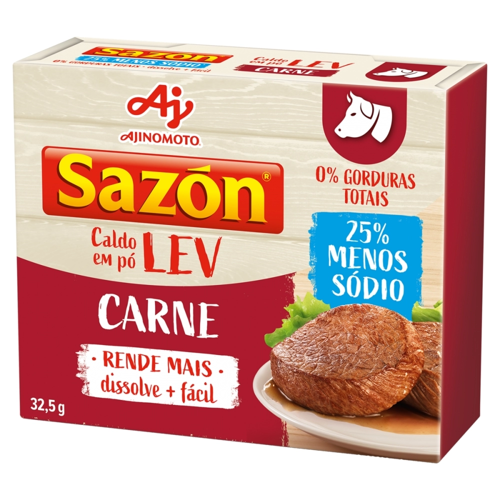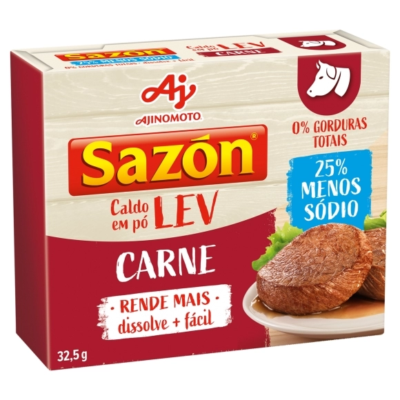 VAREJO>AJINOMOTO>SAZÓN CALDO>CALDO SAZON CARNE LEVE 32,5G C/48
