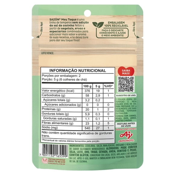 VAREJO>AJINOMOTO>SAZÓN MEU TOQUE>TEMPERO SAZON MEU TOQUE ERVAS POUCH 10G C/21