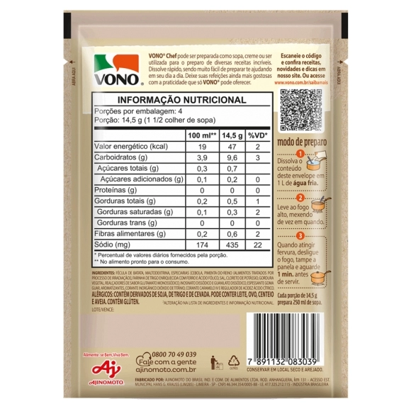 VAREJO>AJINOMOTO>VONO>VONO CHEF CREME CEBOLA SODIO RED. 58G C/24