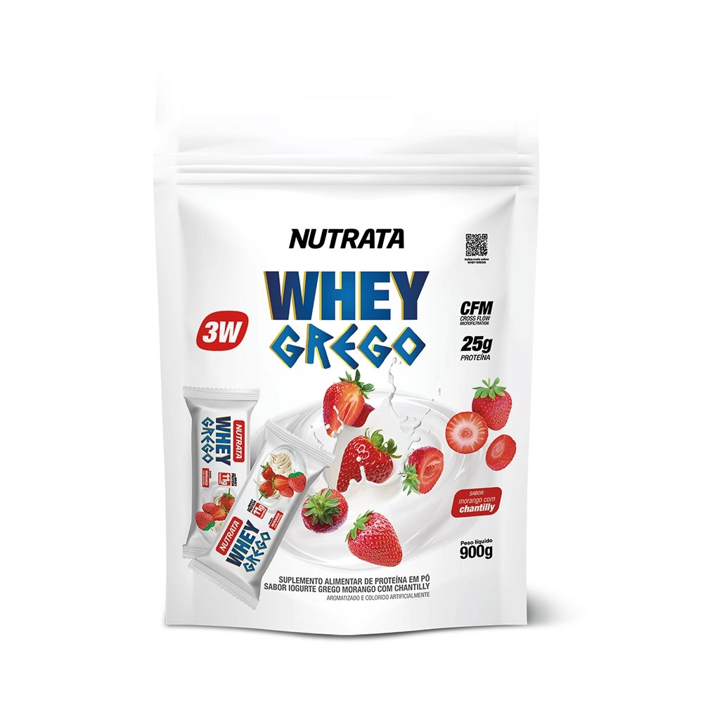 VAREJO>NUTRATA>WHEY PROTEIN>WHEY GREGO MORANGO COM CHANTILLY REFIL NUTRATA 900G